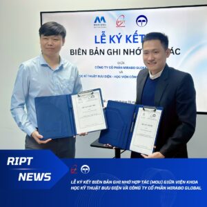 Ngày 23/01/2026, Viện Khoa học Kỹ thuật Bưu điện (RIPT) – Học viện Công nghệ Bưu chính Viễn thông (PTIT) và Công ty Cổ phần Mirabo Global đã chính thức ký kết Biên bản ghi nhớ hợp tác (MOU), đánh dấu bước tiến quan trọng trong mối quan hệ hợp tác giữa nhà trường và doanh nghiệp.